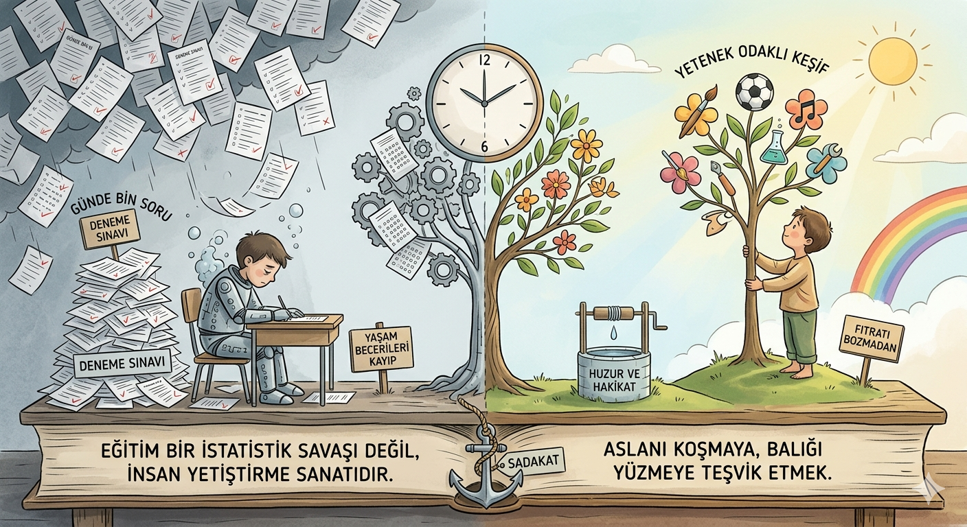 “Ceviz Gölgesi Orman Olmaz, Söğüt Dalından Kaval Olmaz.” Hayatın koşturmacası içinde çocuklarımızın iyiliği için samimiyetle çabalamak gereklidir ve önemlidir. İşte eğitimdeki asıl meselemiz de bu samimiyeti kuşanmak ve evlatlarımızı içi boş yarışların kurbanı değil, karakterli birer insan kılmaktır. Eğitim camiasının mutfağından gelen bir eğitimci veya evladının geleceği için kaygılanan bir…