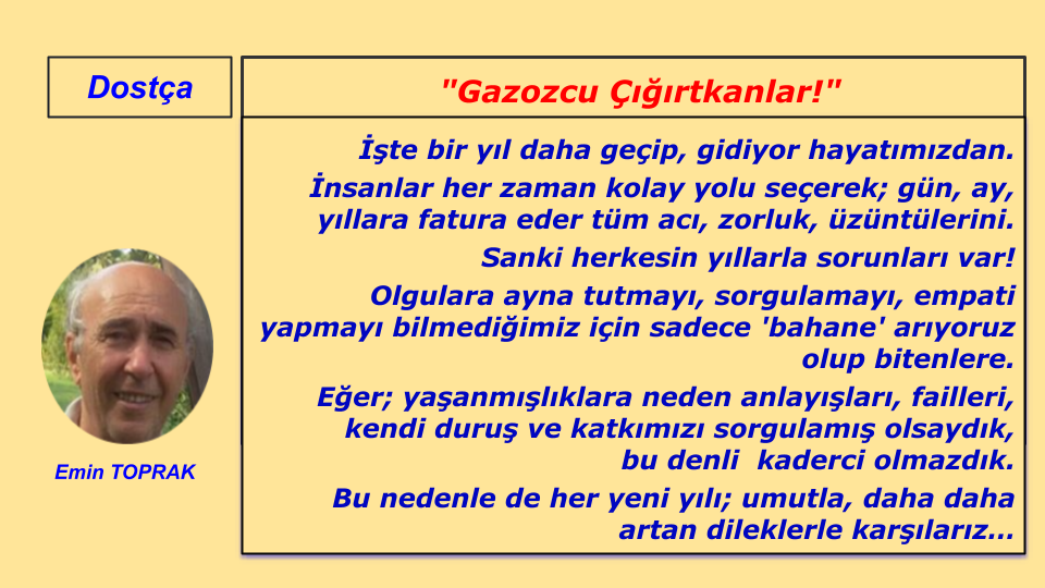 Yeni yıla girerken sizlerle dertleşmek için yurdumuzdaki egemen iklimin özetini yapmakla, bu iklimin ‘insanca’ bir yaşam sağlamadığını anlatmak istedim.